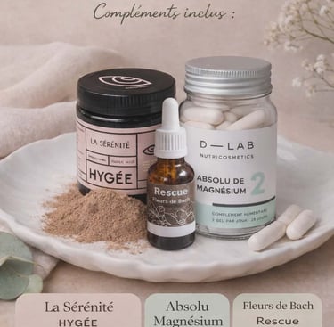– et, selon la thématique, un complément alimentaire ou un soin corps.
